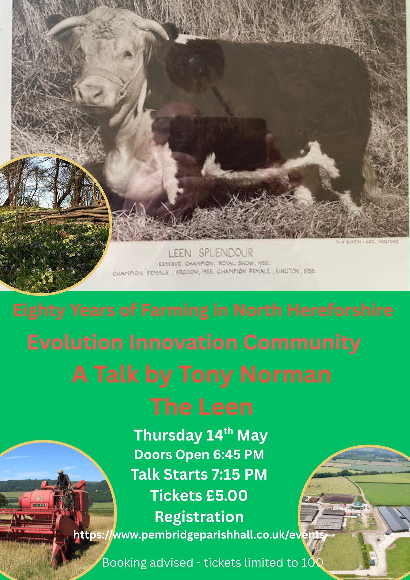 Having farmed in North Herefordshire for many decades, Tony brings rare first-hand insight into how the countryside, the craft, and the wider farming community have changed — and endured. Whether you're a farmer yourself, have roots in the land, or are simply curious about the world on your doorstep, this promises to be a fascinating and deeply personal evening. Don't miss it.